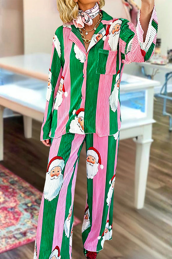 Classic Leopard Print Santa Claus Wide-Leg Pants