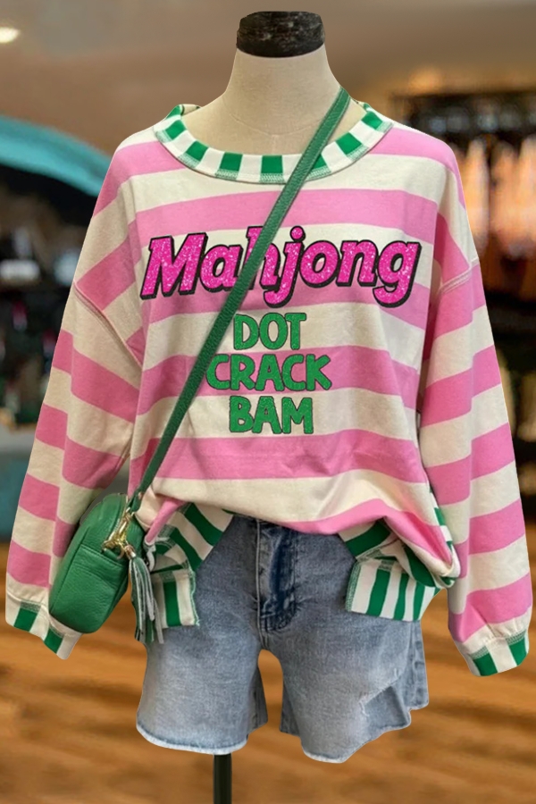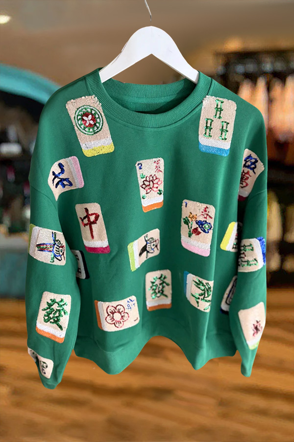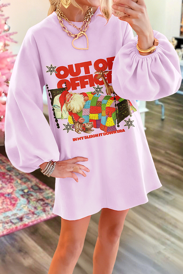 Merry Mahjong Bow Puff Sleeve Sweatshirt Dress