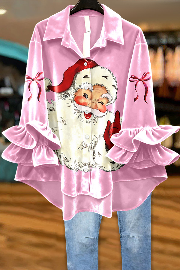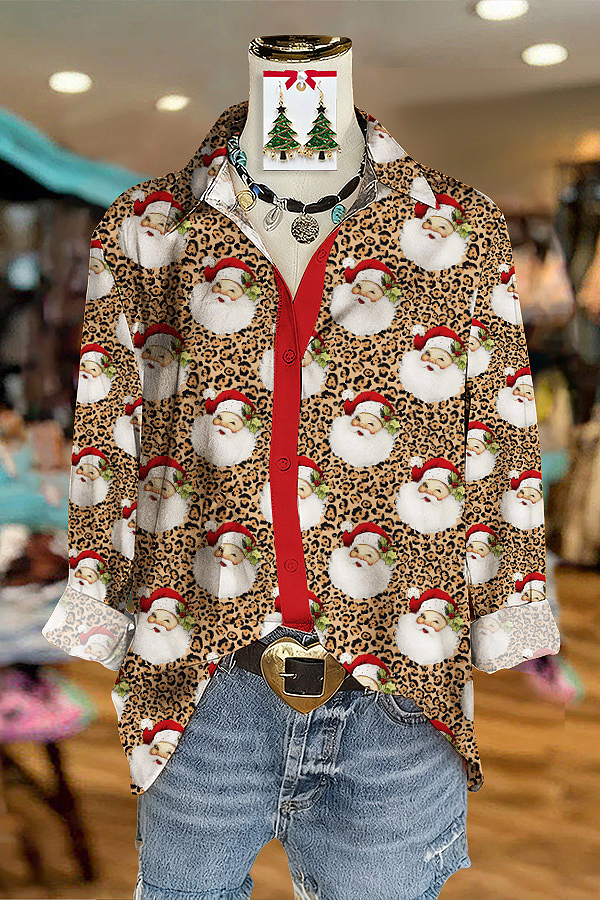 Classic Santa Claus Leopard Print Button-Up Shirt