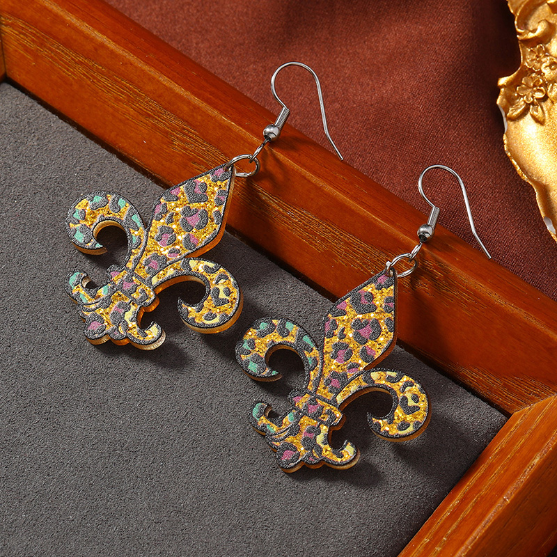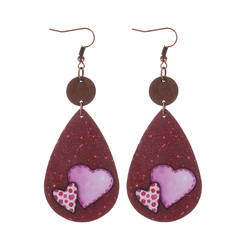 Valentine's Day Heart Hollow Four-leaf Clover Wooden Earrings