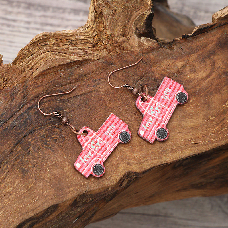 Valentine's Day Love Letters Car Shaped Wooden Earrings