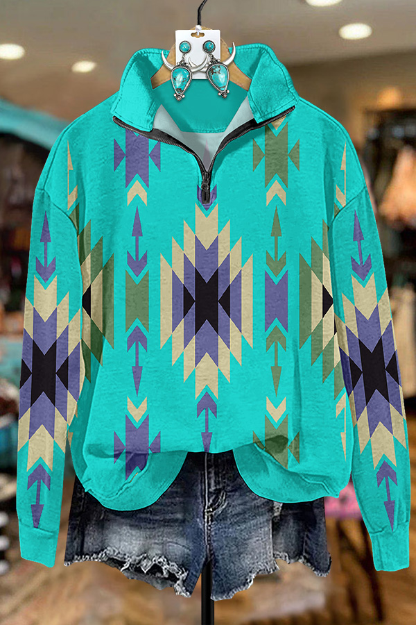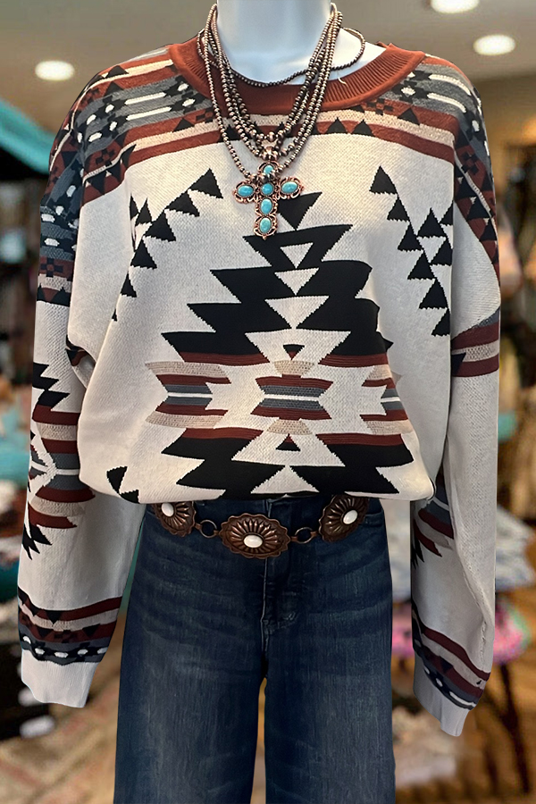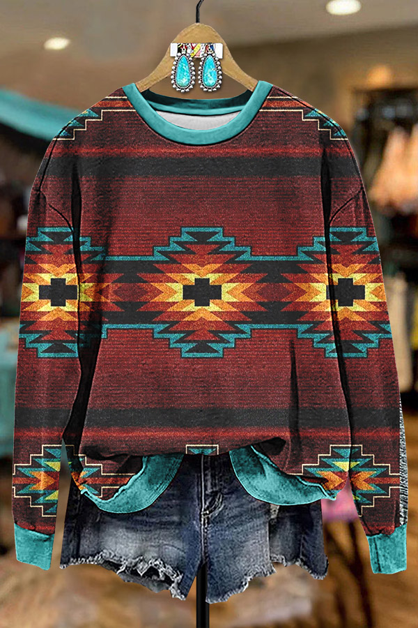 Simple Western Aztec Printed Sweatshirt