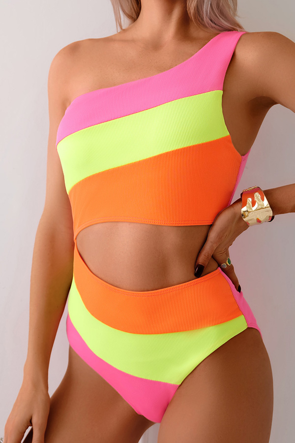Contrast Color Off-Shoulder One-piece Swimsuit