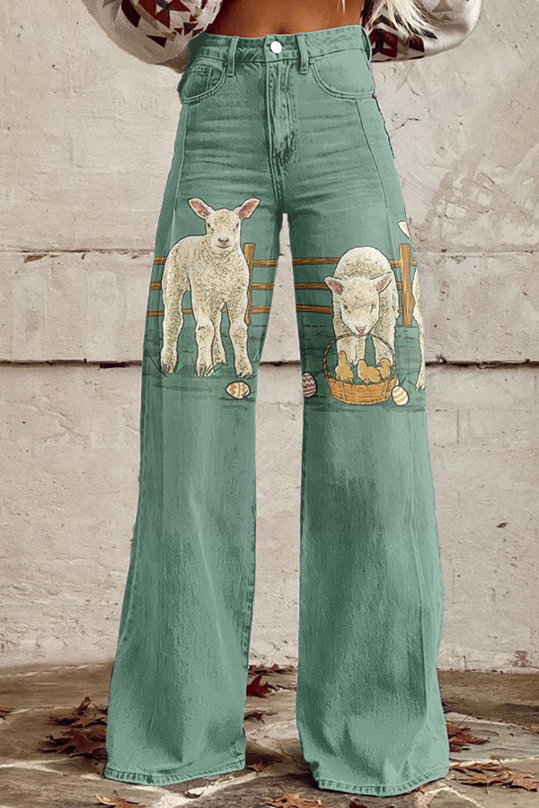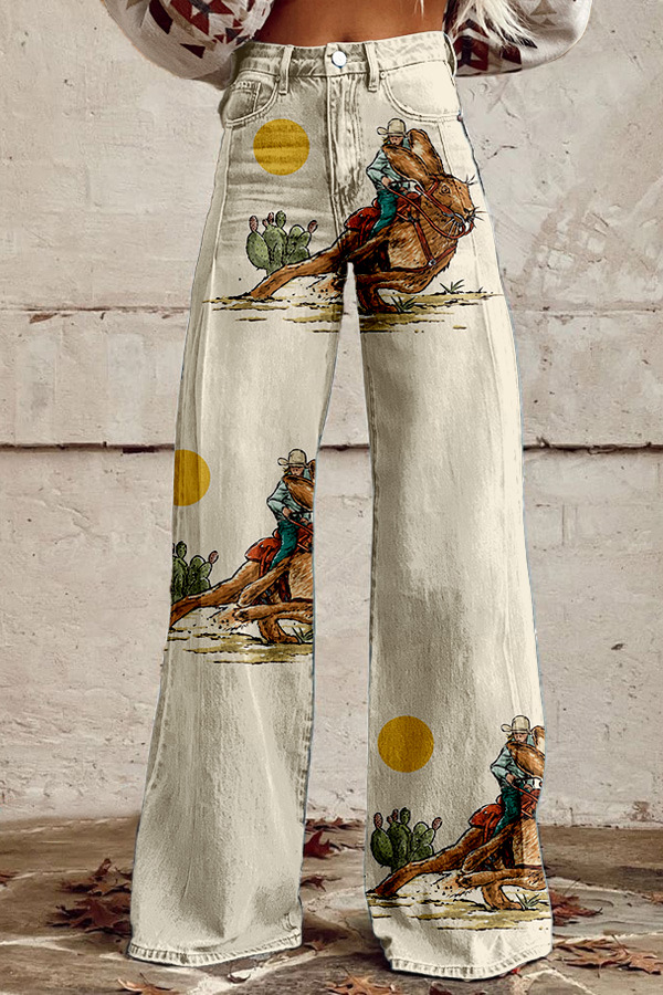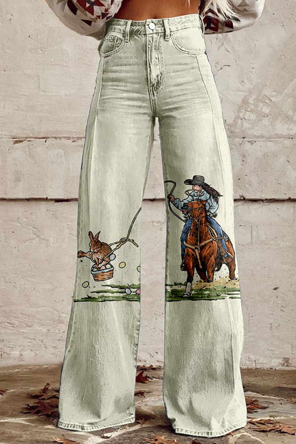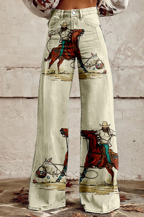 Easter Western Cowgirl Rabbit Wide Leg Pants