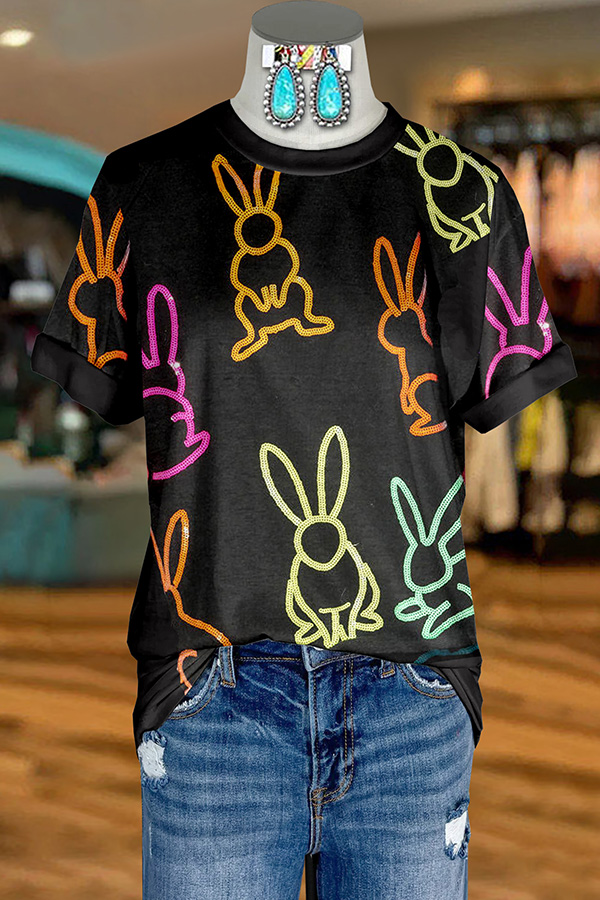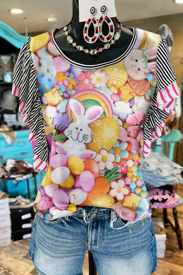 Chic Easter Bunny Eggs Print Fly Sleeve T-shirt