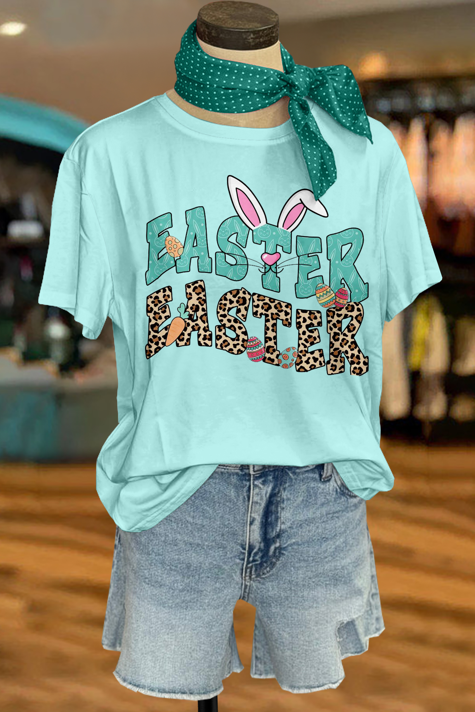 Western Easter Bunny Turquoise Wide Leg Pants