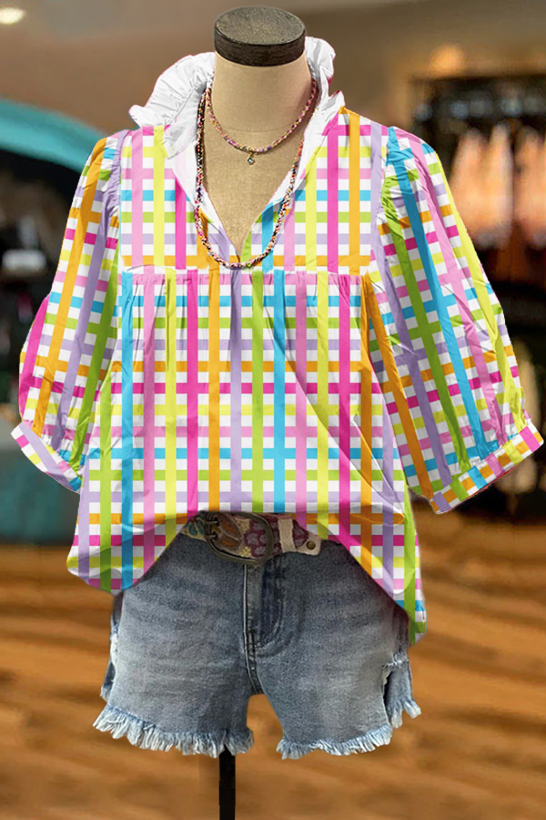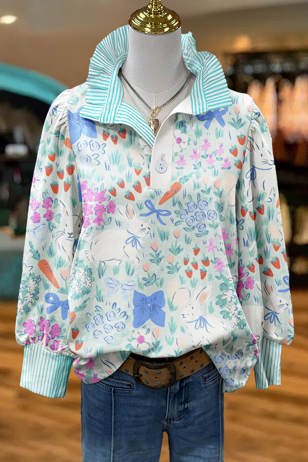 Elegant Contrast Ruffled Easter Bunny Blouse