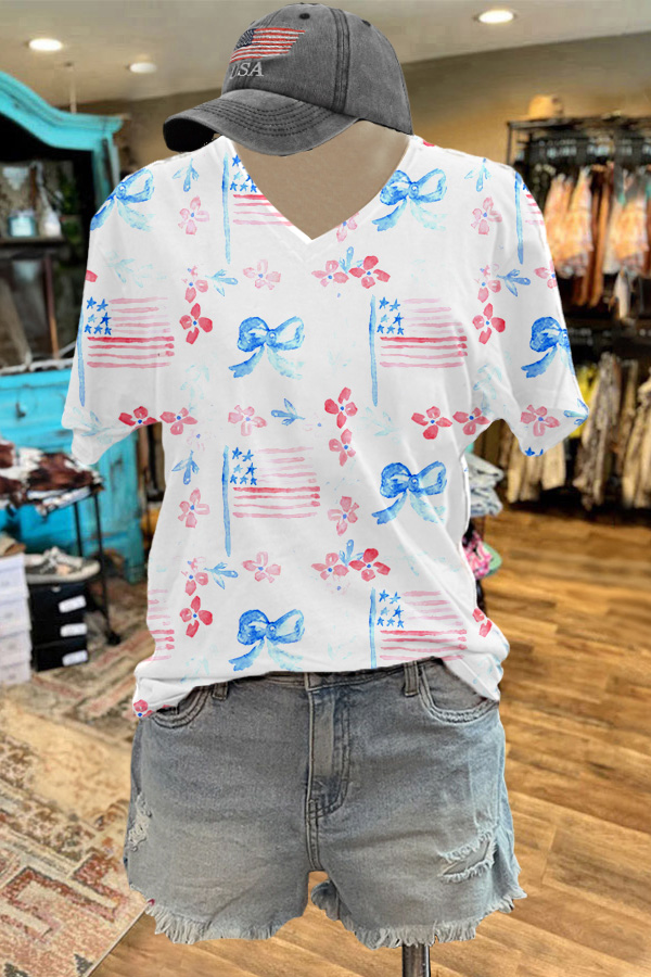 Unique Splicing Patriotic Day Print Puff Sleeve Blouse