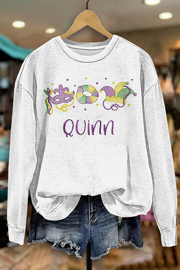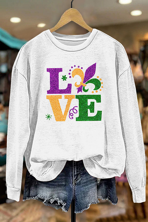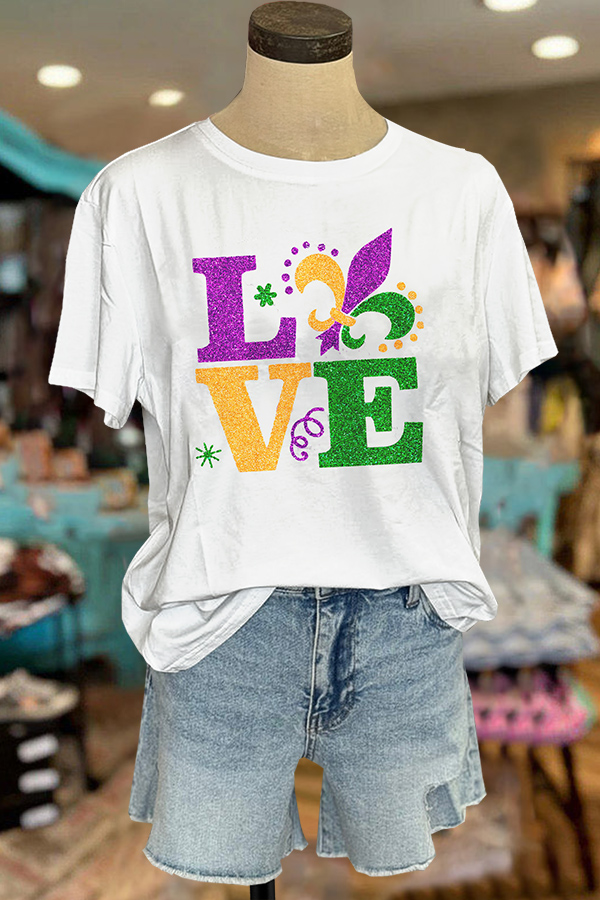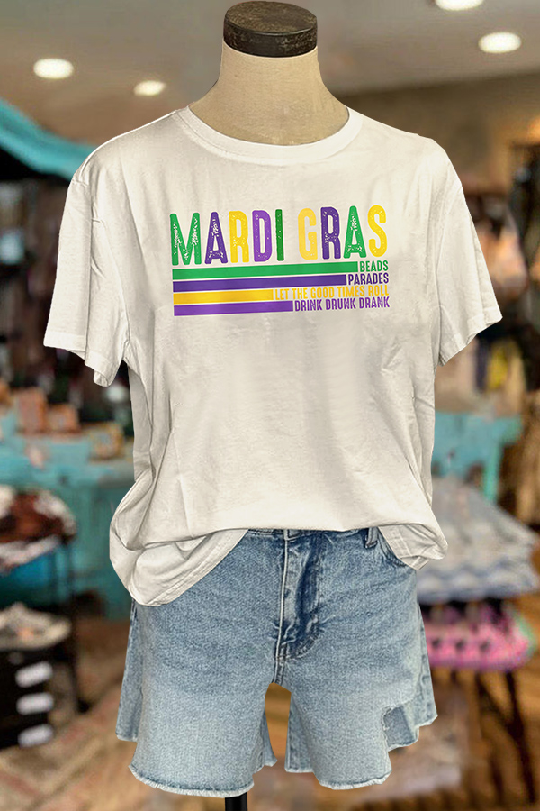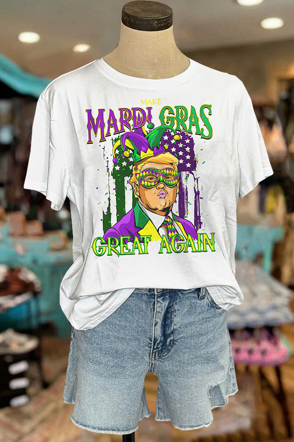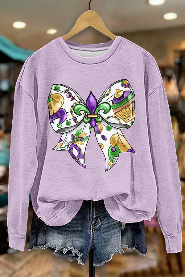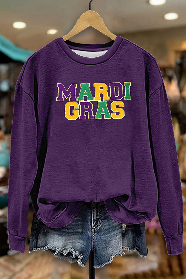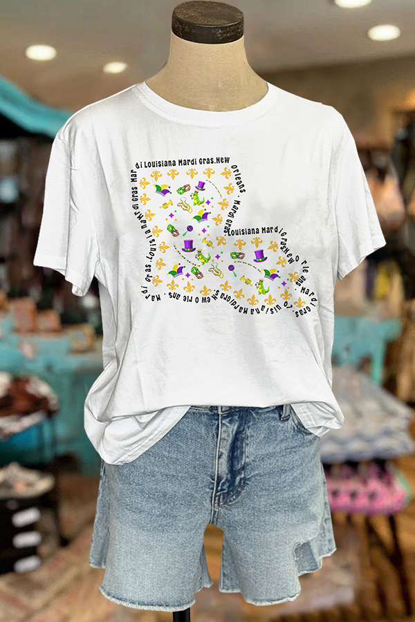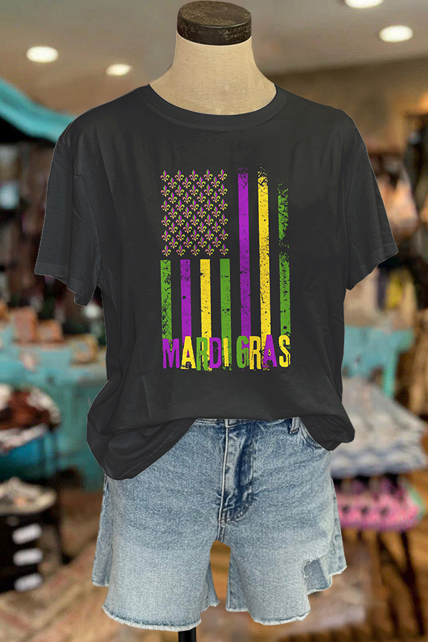 Mardi Gras Printed V-neck Puff Sleeve Blouse