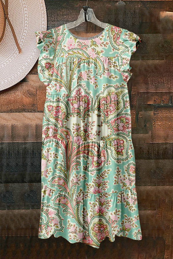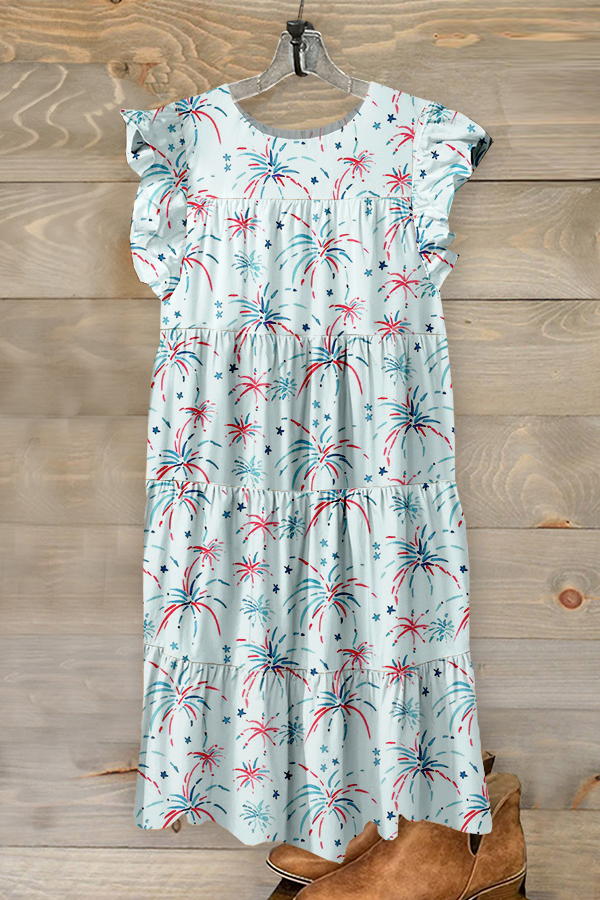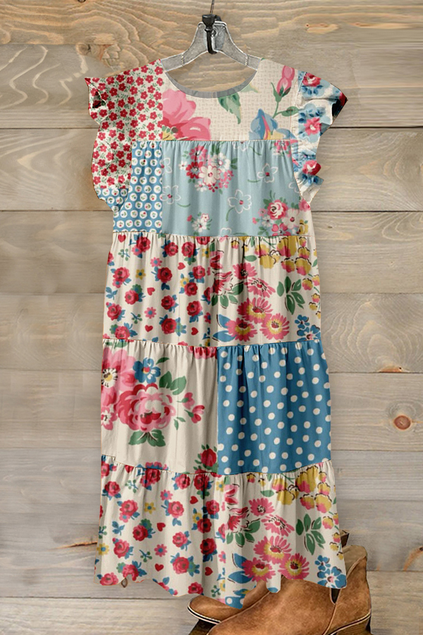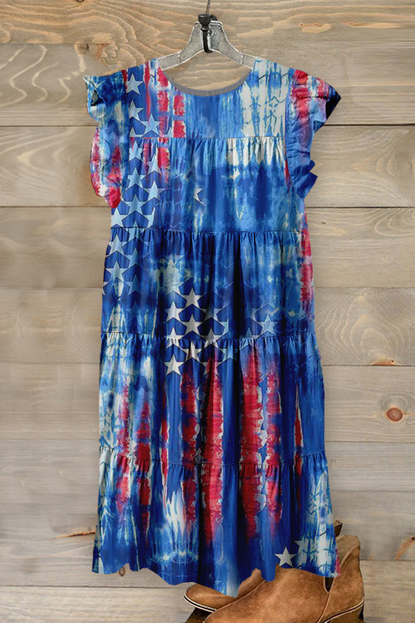 Western-Style Flowing Satin Polka Dot Ruffled Elastic Mini Dress