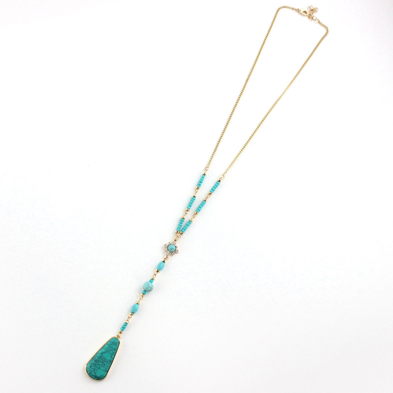 Vintage Turquoise Flower Long Beaded Necklace