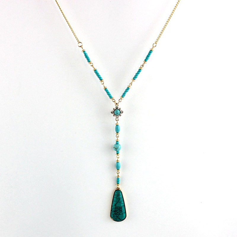 Vintage Drop-shaped White Turquoise Pendant Beaded Necklace