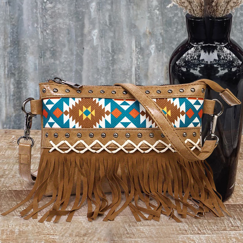 Western Aztec Studded Tassel Leather Bag