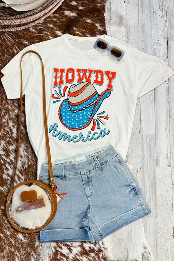 Chic Stars Patriotic Day Print Puff Sleeve Blouse