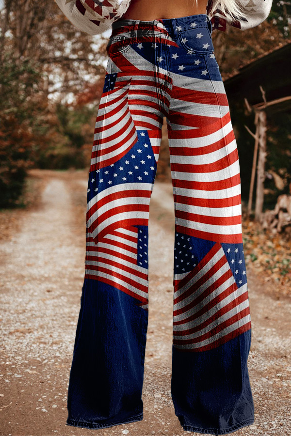 Patriot Day Red Blue Gradient Wide Leg Pants