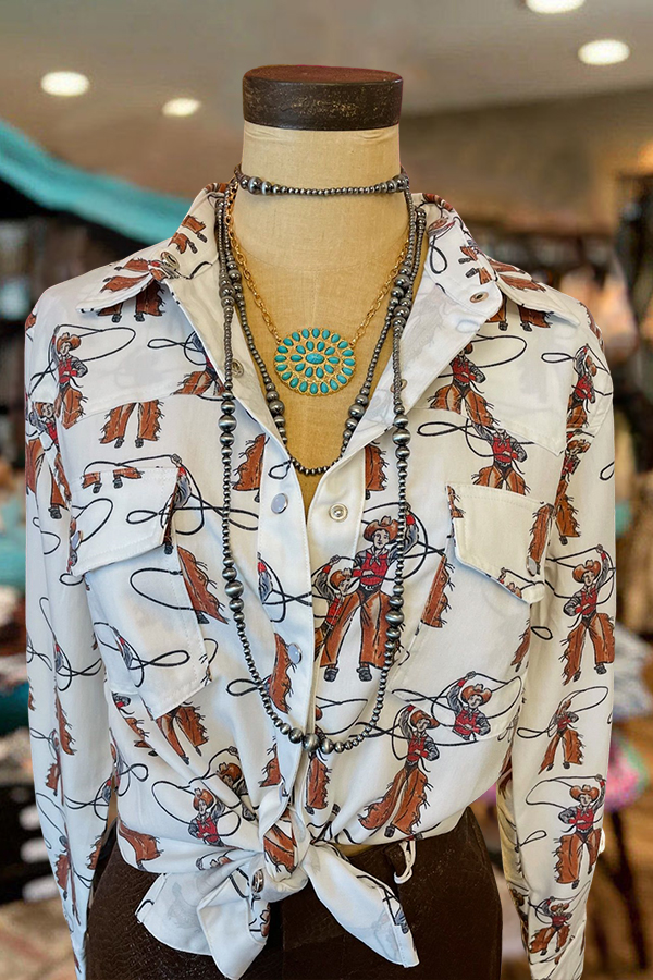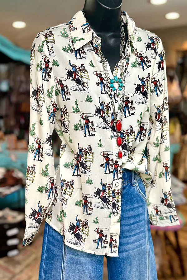 Rodeo Print Casual Long Sleeve Comfortable Cotton Shirt