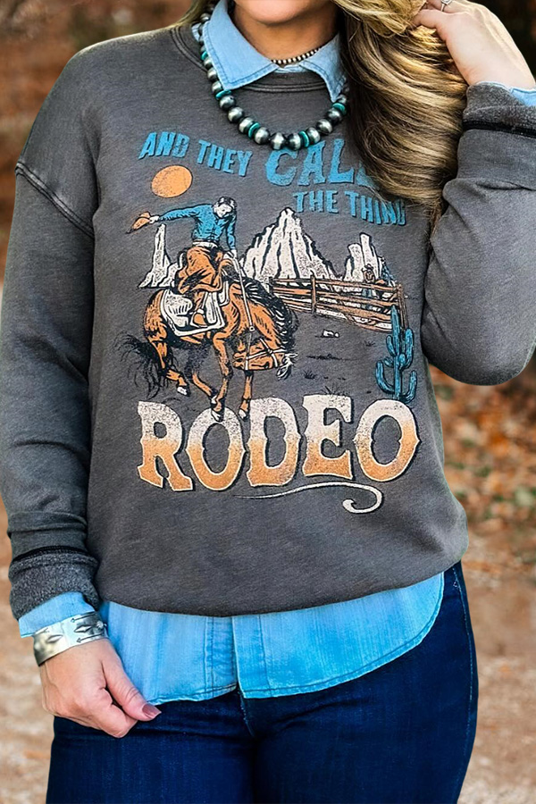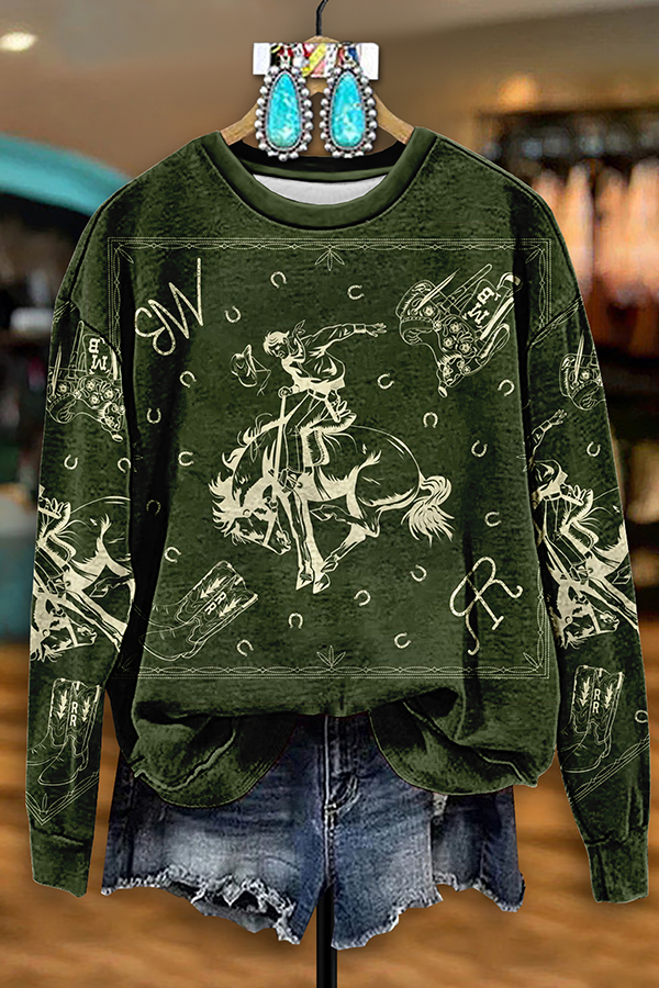 Cozy Horse Racing Cowboys Rodeo Print Sweatshirt