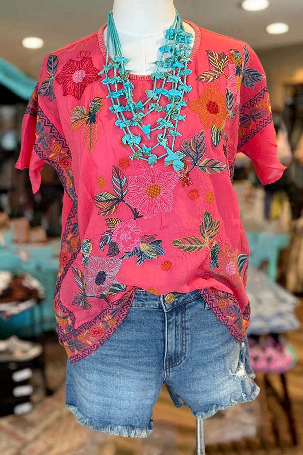 Classic Embroidered Floral Leopard Print Layered Top