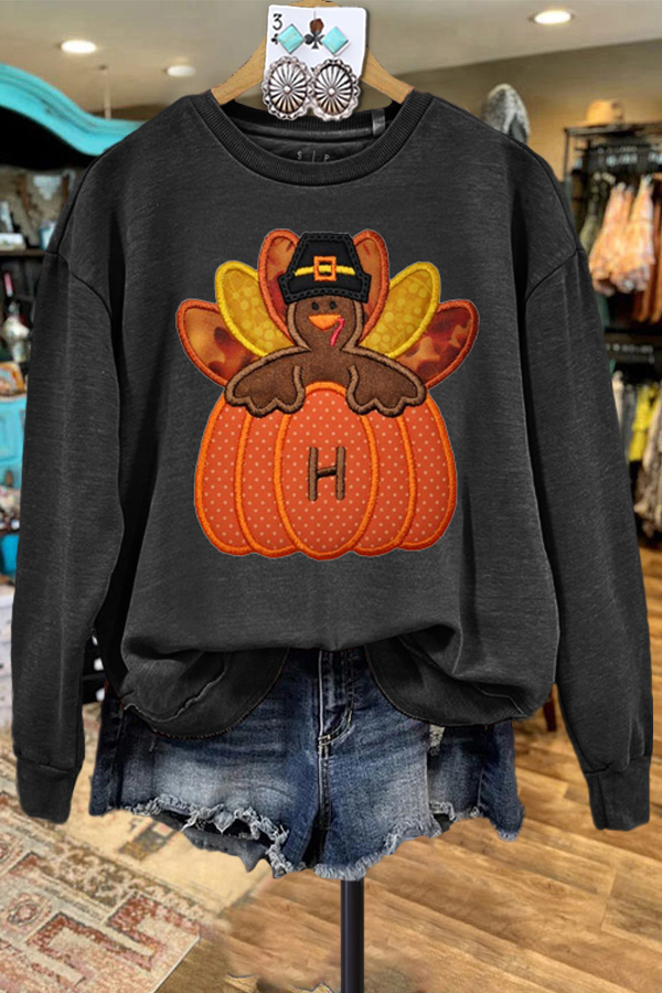 Cute Thanksgiving Turkey Print Half Sleeve Sweatshirt