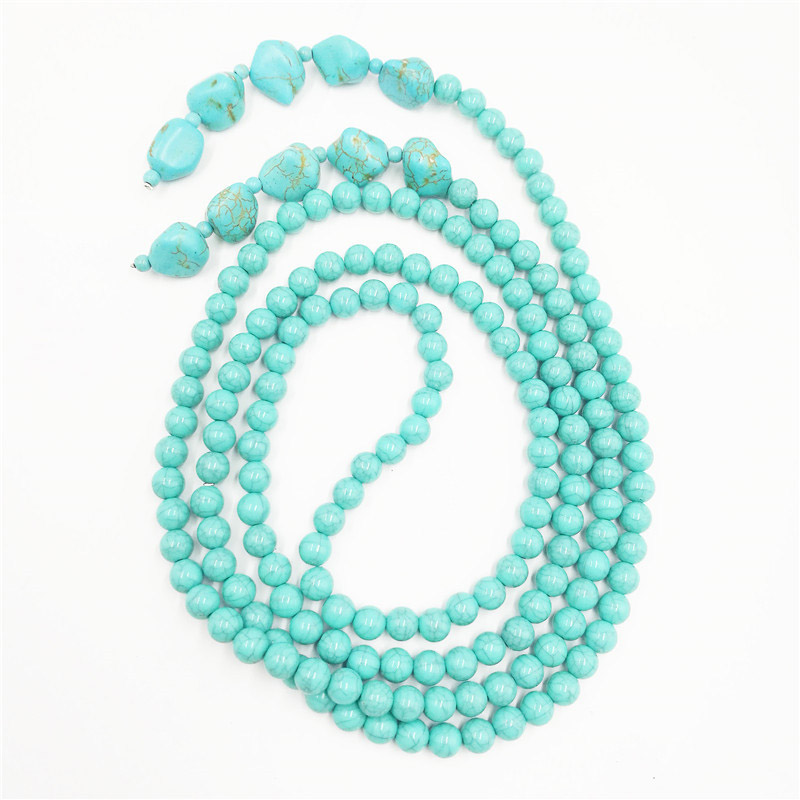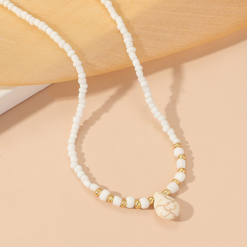 Vintage Drop-shaped White Turquoise Pendant Beaded Necklace