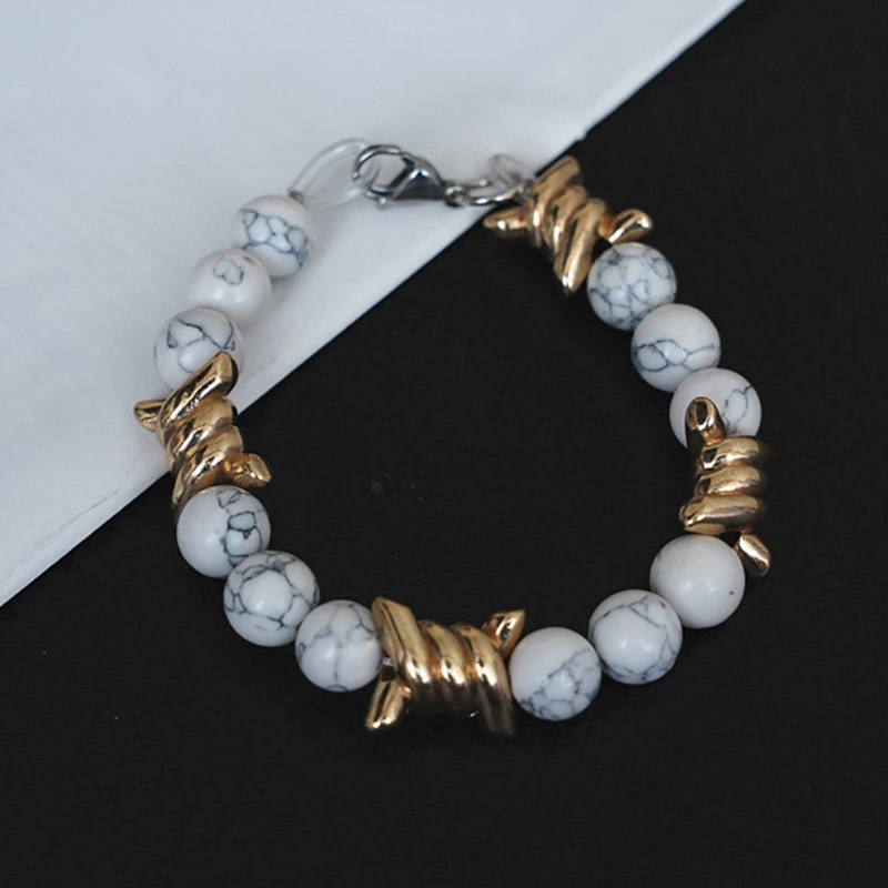 Vintage Metal Thorn White Turquoise Pearl Bracelet