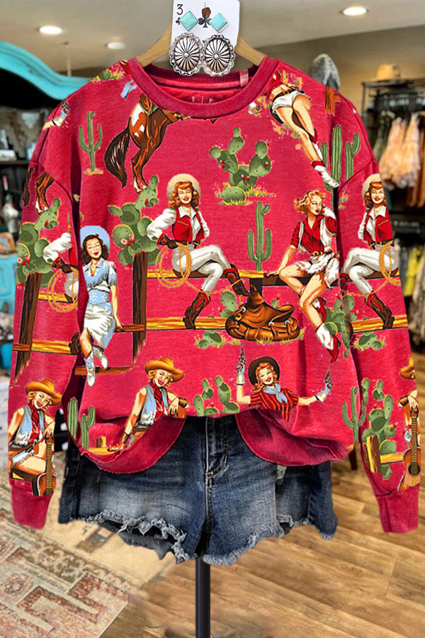Vintage Western Print Long Sleeve Sweatshirt