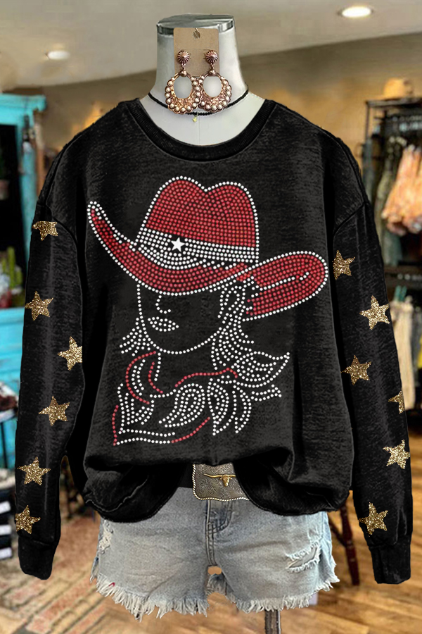 Shiny Western Cowgirl Star Print Sweatshirt