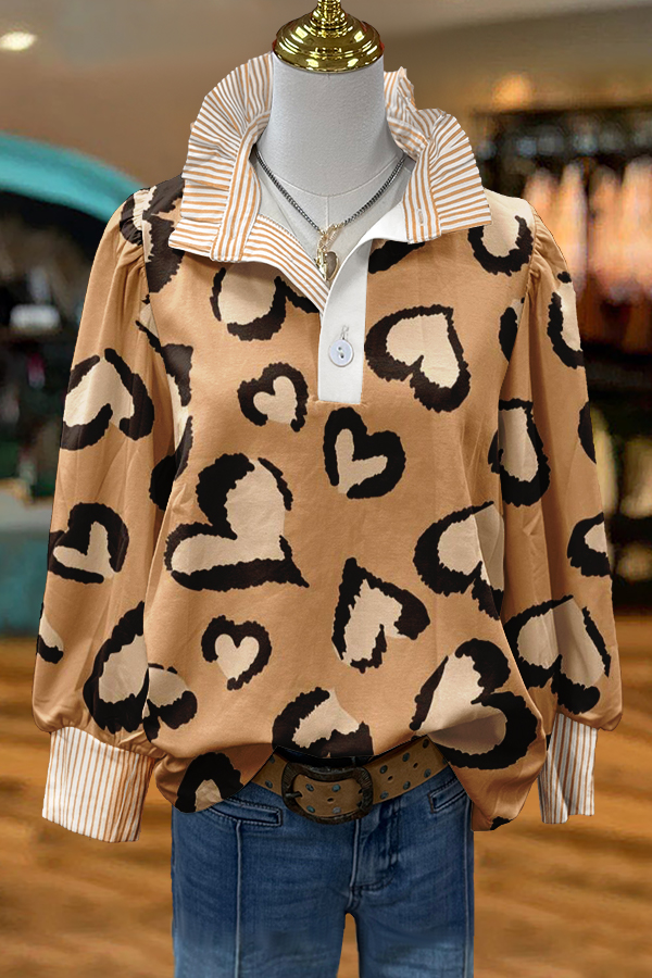 Cute Hearts Leopard Print Puff Sleeve Blouse