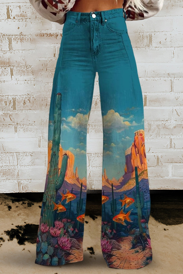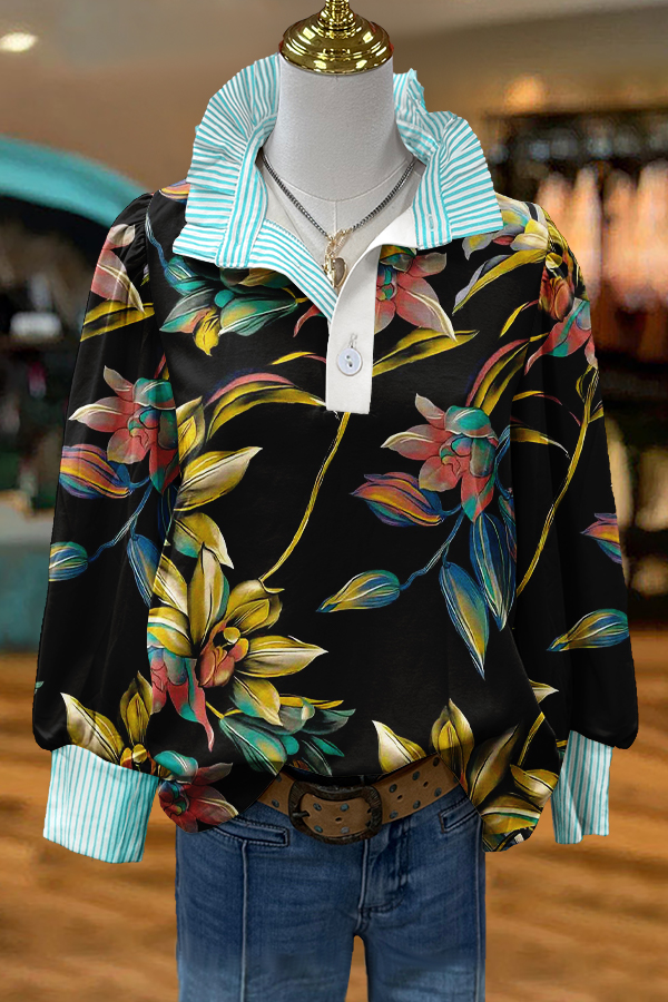 Vintage Flower Print V-neck Pleated Ruffle Dress
