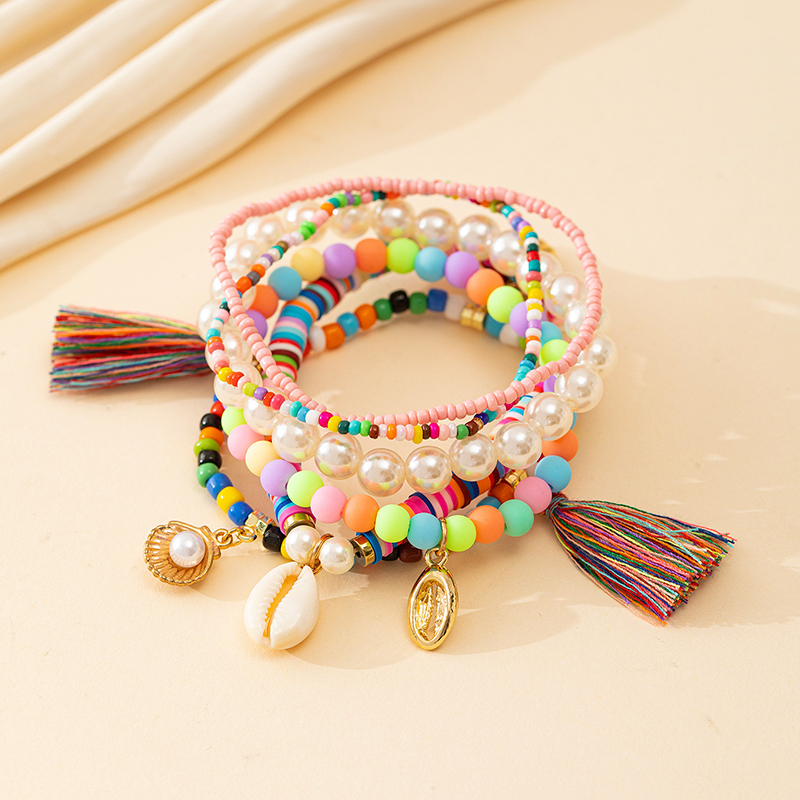 Stay on trend this season in our new colorful jewelry. We especially love the faux pearl fabric and think this piece will be a new favorite in your closet!