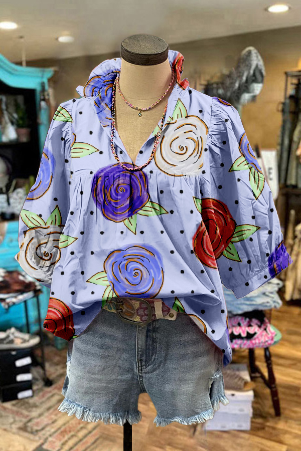 Sweet Rose Floral Print Puff Sleeve Blouse