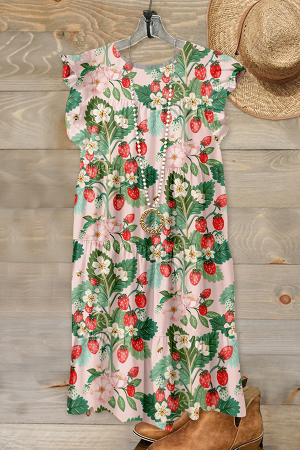 Strawberries Print Ruffled Dress