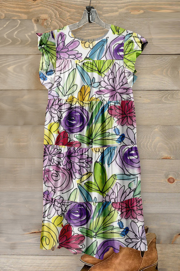 Cute Mardi Gras Floral Print Ruffled Pleated Dress