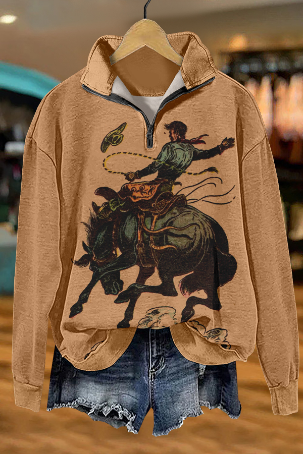 Retro Western Cowboy Horse Racing Rodeo Print Sweatshirt