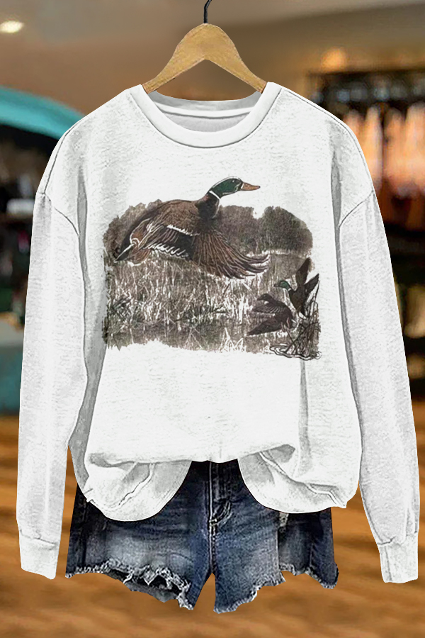 Cozy Camp Wild Ducks Print Sweatshirt