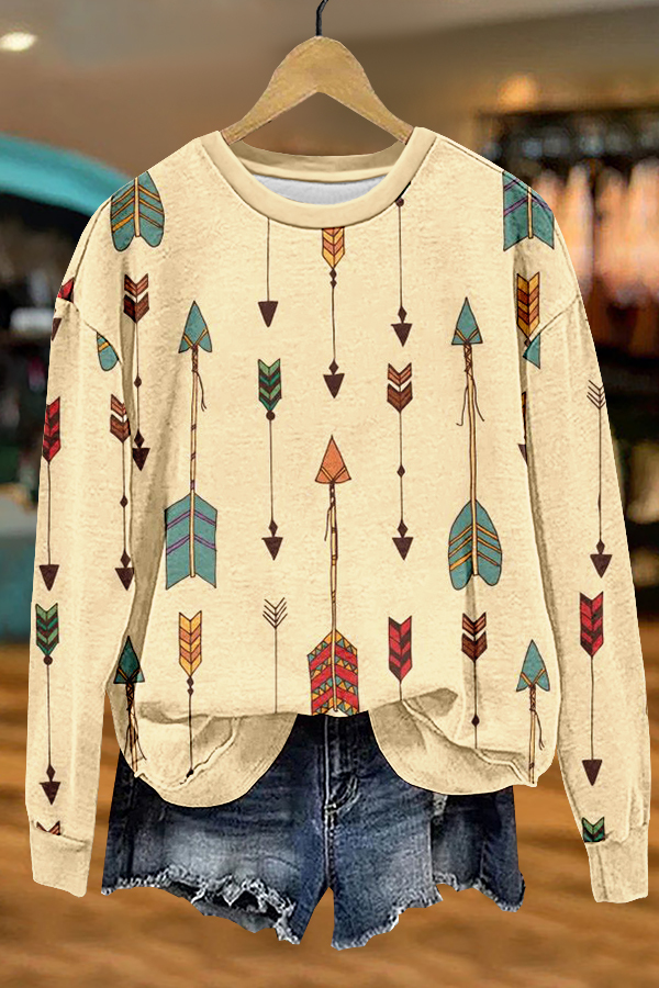 Western Aztec Arrows Print Sweatshirt