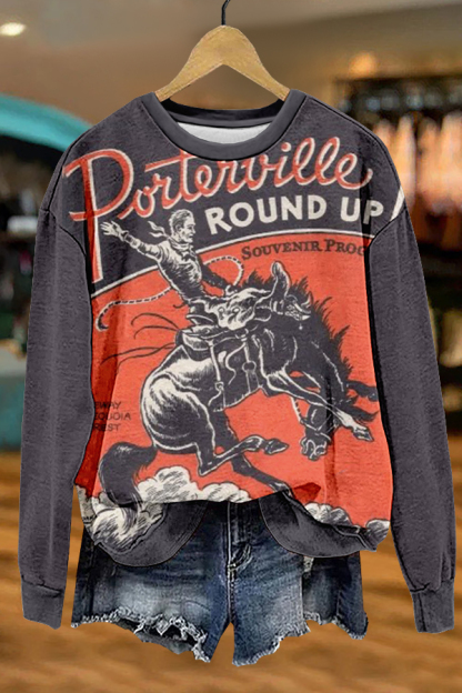 Chic Horse Racing Cowboys Rodeo Print Sweatshirt