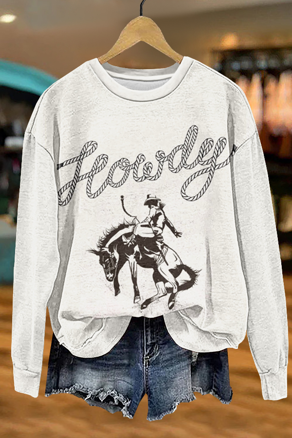 Retro Howdy Western Cowboy Horse Racing Rodeo Print Sweatshirt