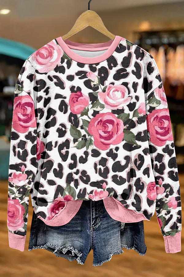 Sweet Flowers Leopard Print Sweatshirt