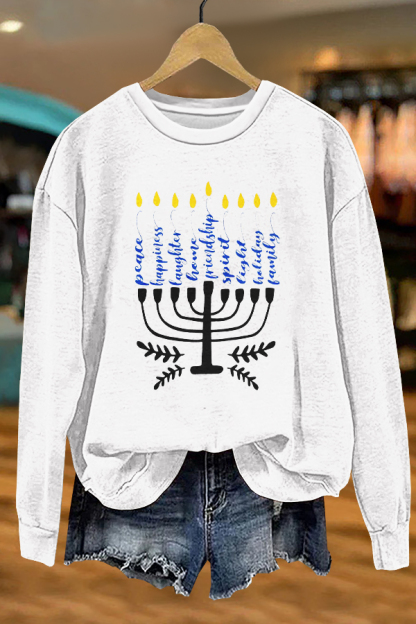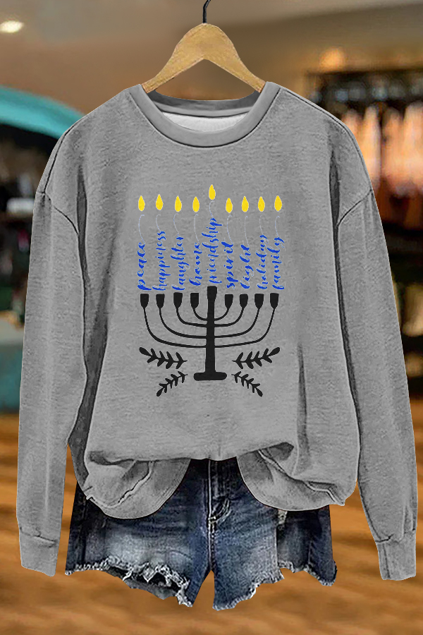 Cute Hanukkah Menorah Print Sweatshirt