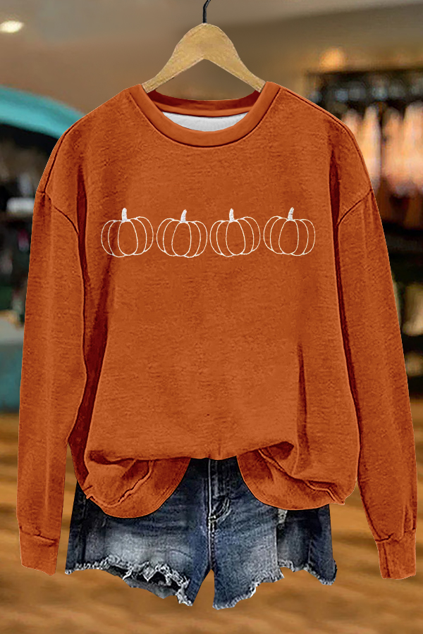 Delicate Thanksgiving Pumpkin Print Sweatshirt