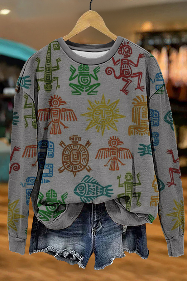Unique Western Aztec Print Sweatshirt