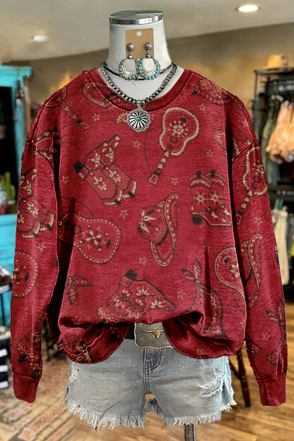 Stay on trend this season in our new retro, round neck sweatshirt. We especially love the graphic print fabric and think this piece will be a new favorite in your closet!