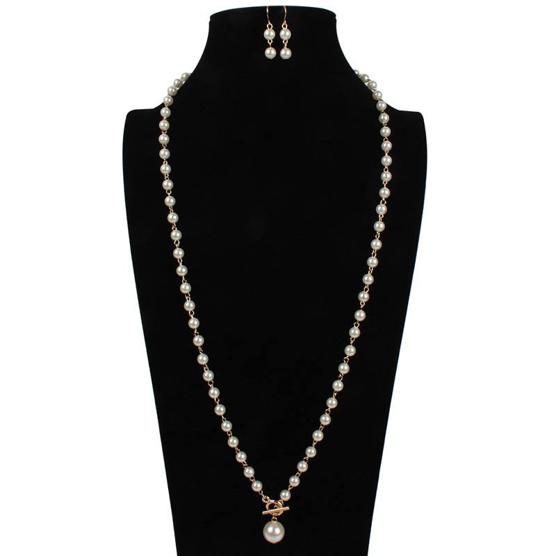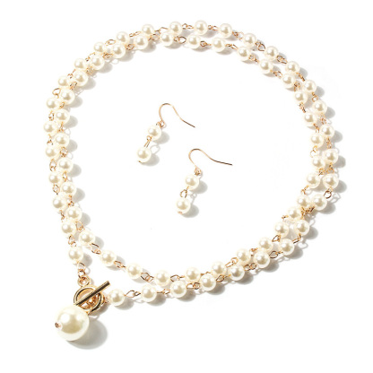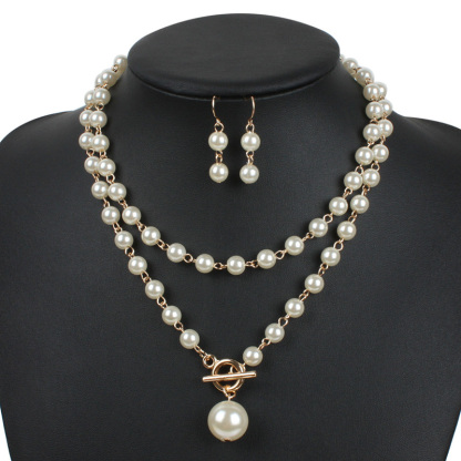 Elegant Pearl Necklace Earrings Set