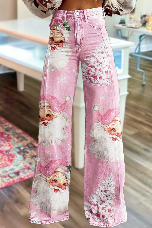 Vintage Pink Santa Wide-Leg Pants