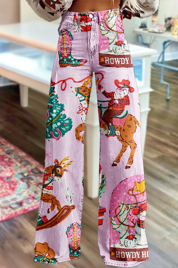 Howdy Cowgirl Santa Wide-Leg Pants
