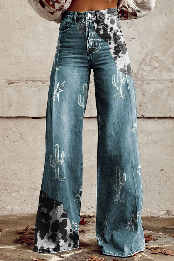 Women's Vintage Print Casual Wide Leg Pants