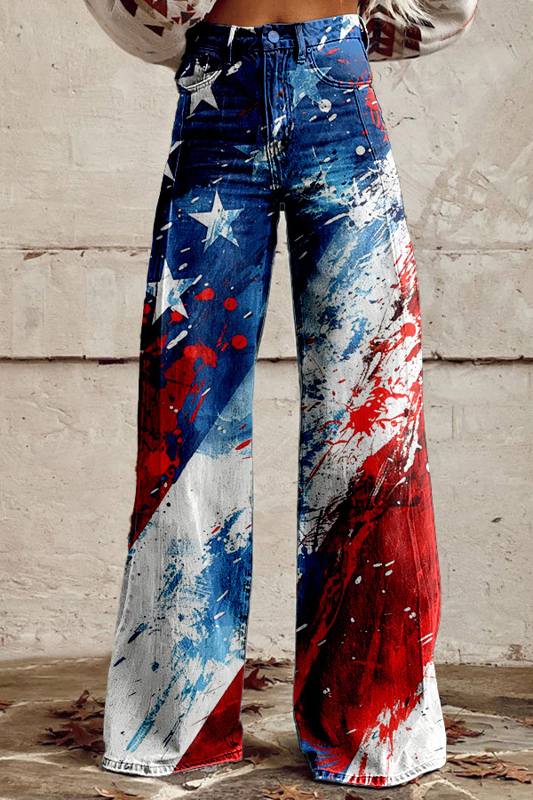 Contrast American Flag Wide Leg Pants