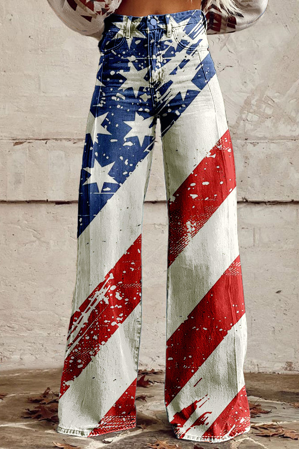 American Stars Stripes Flag Wide Leg Pants