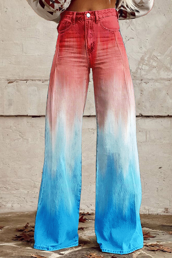 Patriot Day Red Blue Gradient Wide Leg Pants
